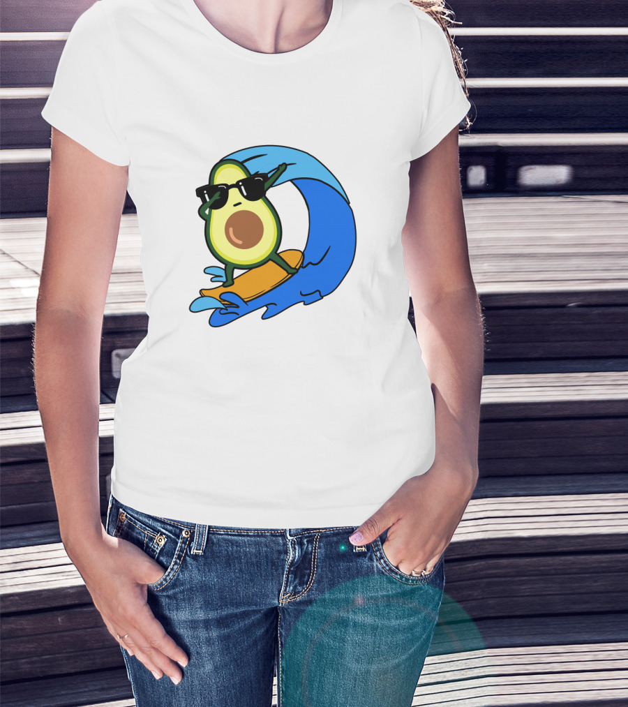 Avocado Wearing Sunglasses Riding Blue Ocean Wave T-Shirt