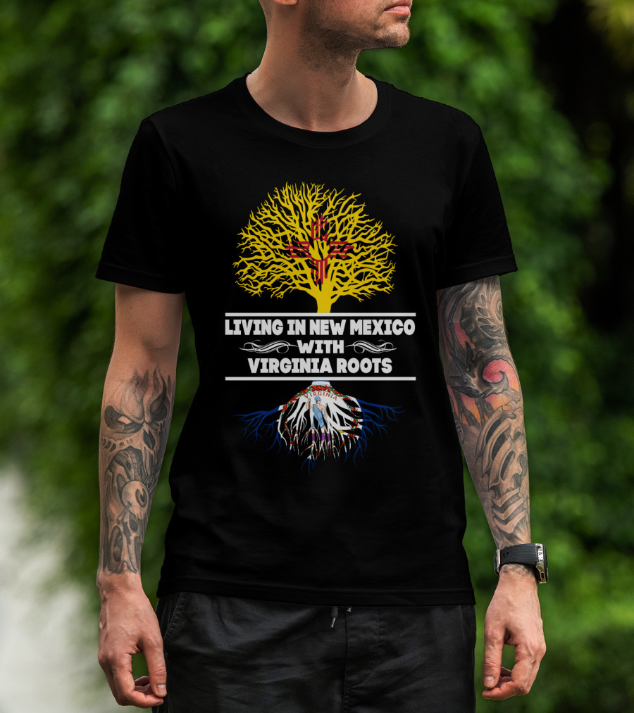 Living In New Mexico With Virginia Roots Zia Symbol Yellow Tree And Virginia Seal Roots T-Shirt