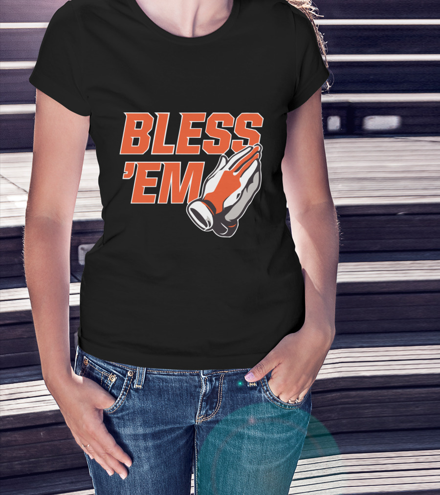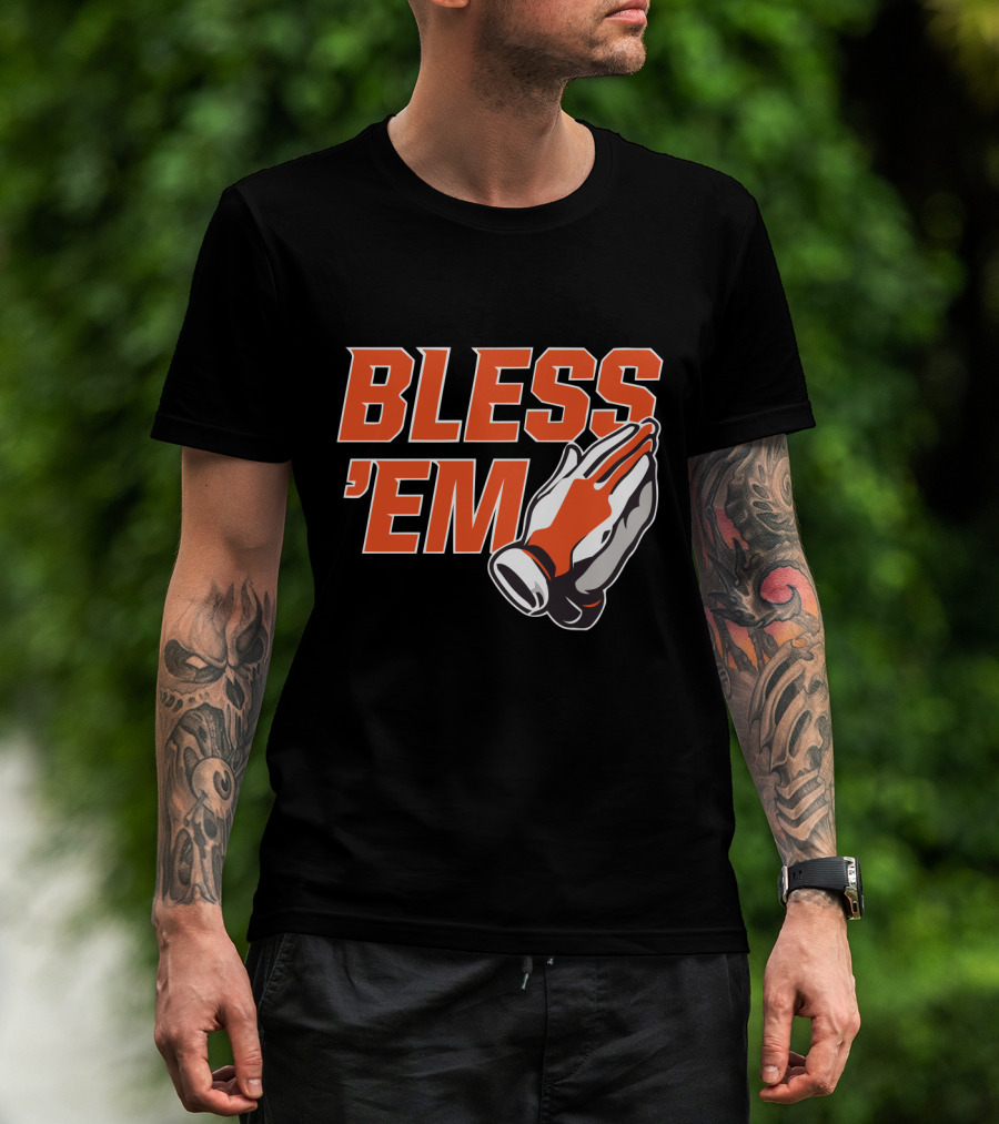 BLESS 'EM Praying Hands In Bold Orange And Black T-Shirt