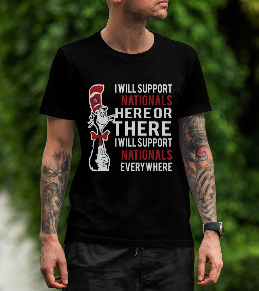 Cat In The Hat Nationals Support Here Or There Everywhere T-Shirt