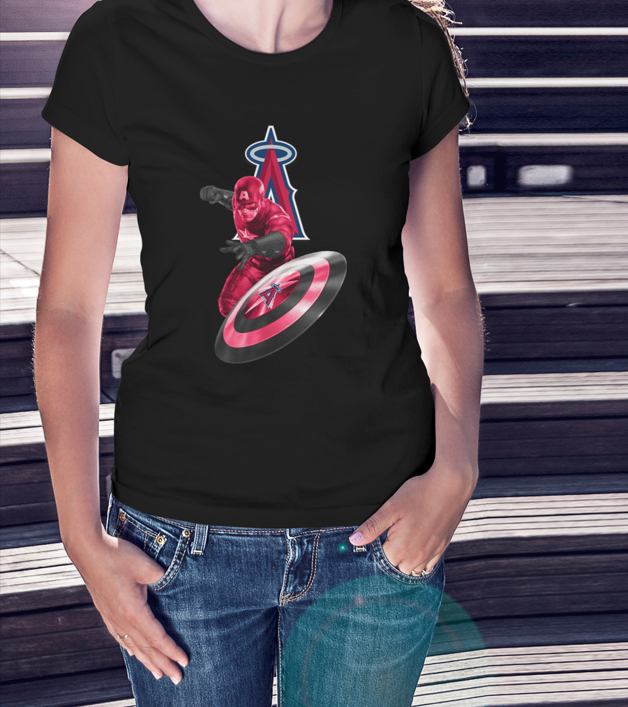 Los Angeles Angels Captain America Crossover With Shield And Halo Insignia T-Shirt