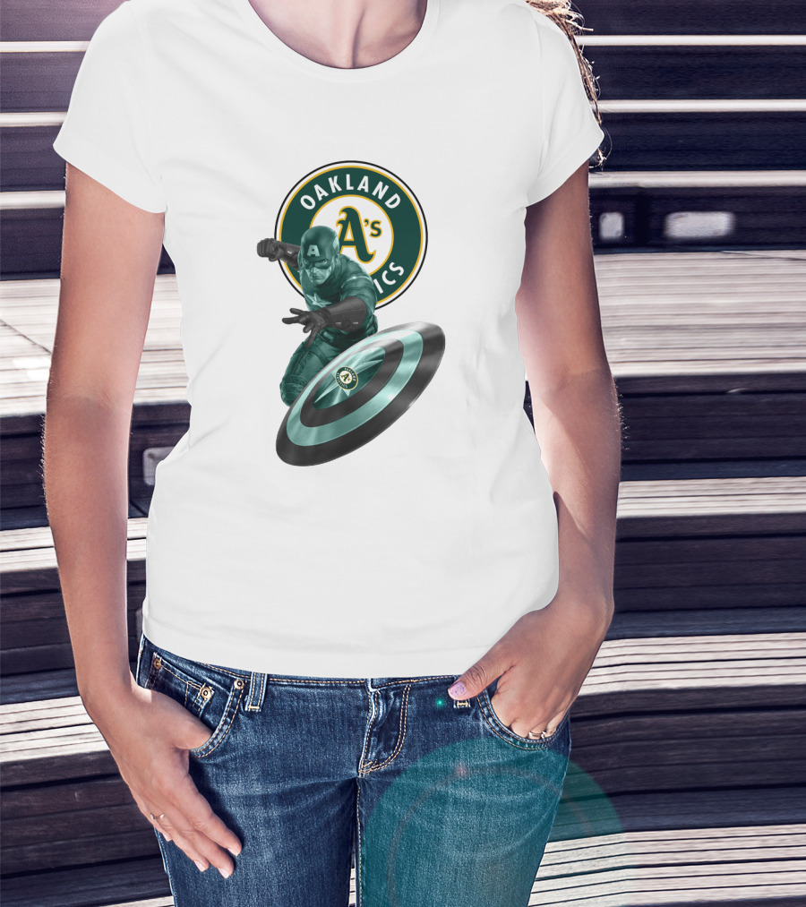 Oakland Athletics A's Logo With Captain America's Shield And Heroic Pose T-Shirt