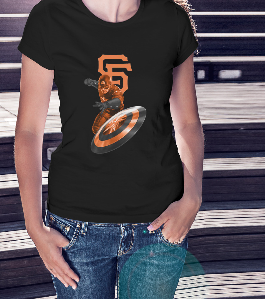 San Francisco Giants Captain America Crossover With Iconic SF And Shield T-Shirt