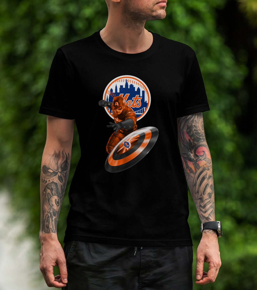 Captain America And New York Mets Crossover Emblem T-Shirt