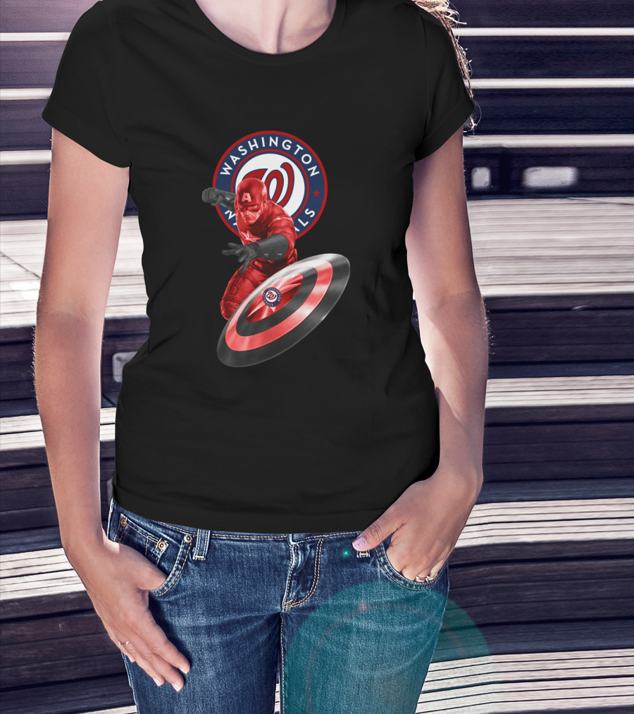 Washington Nationals Captain America Collaboration Featuring Iconic Shield T-Shirt