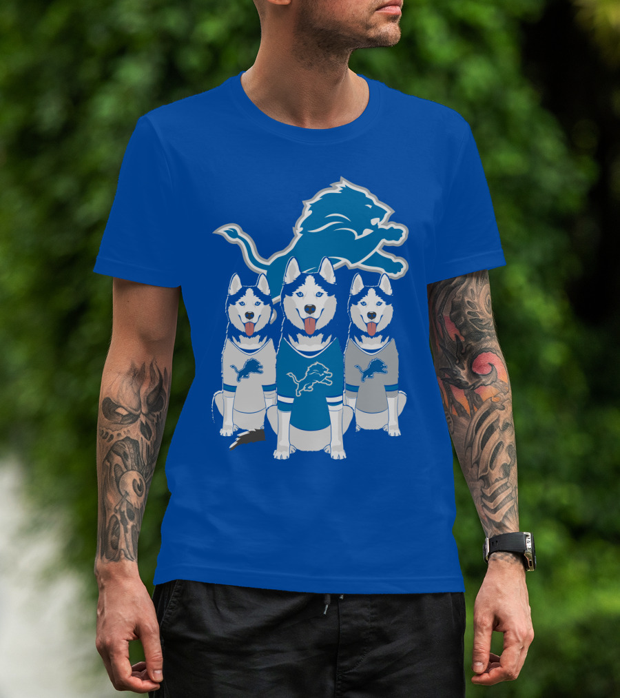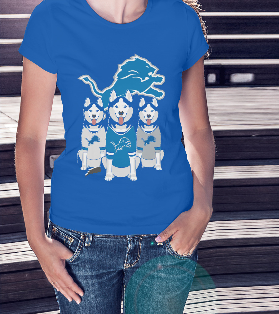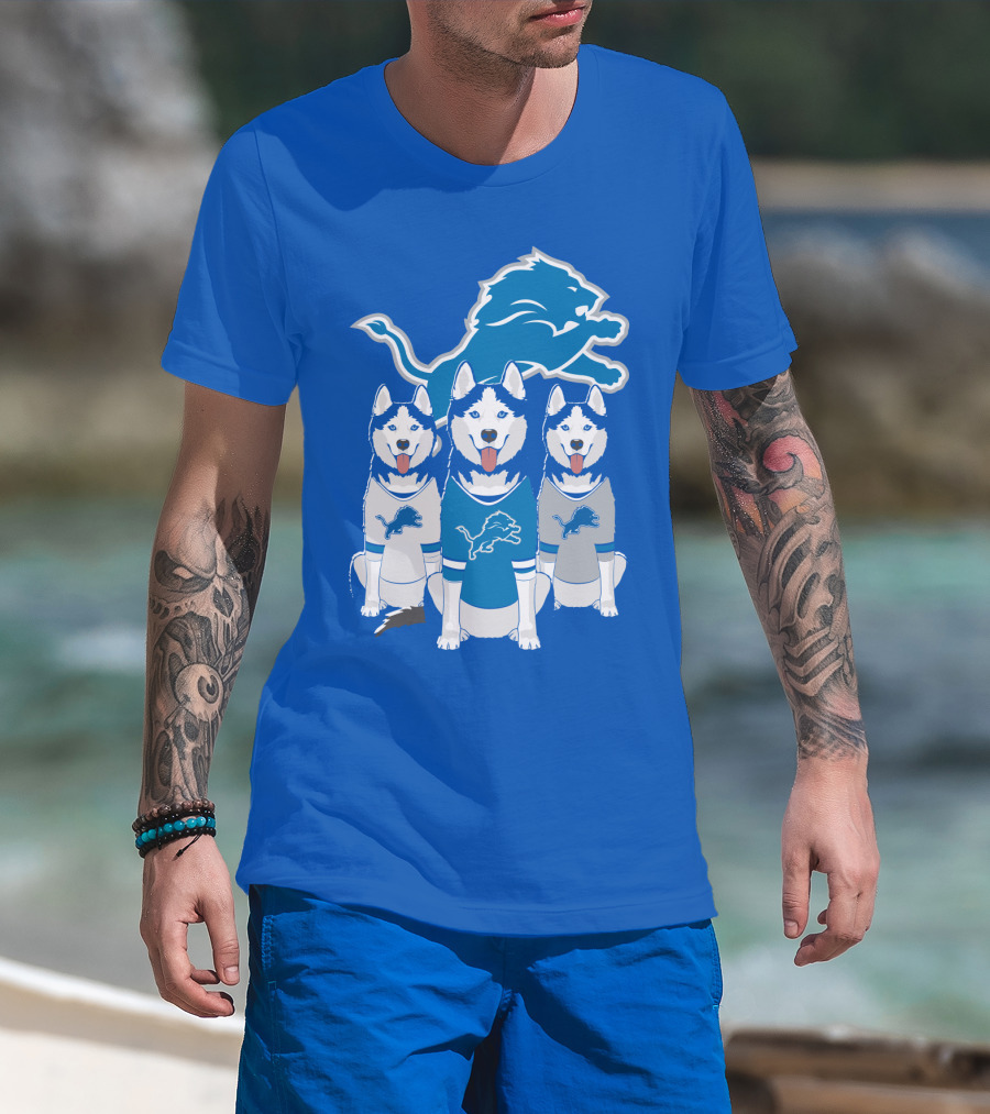 Detroit Lions Husky Trio With Iconic Blue Lion T-Shirt