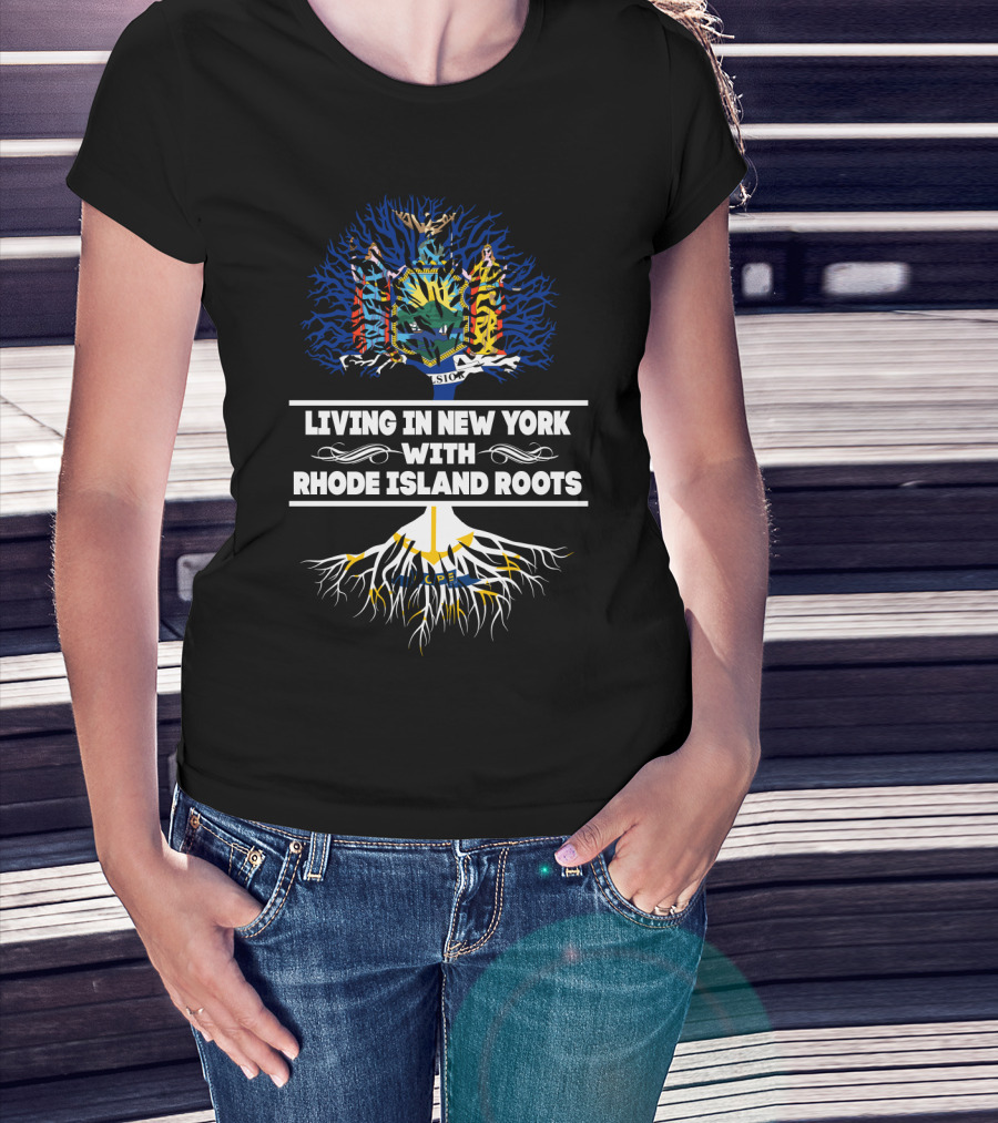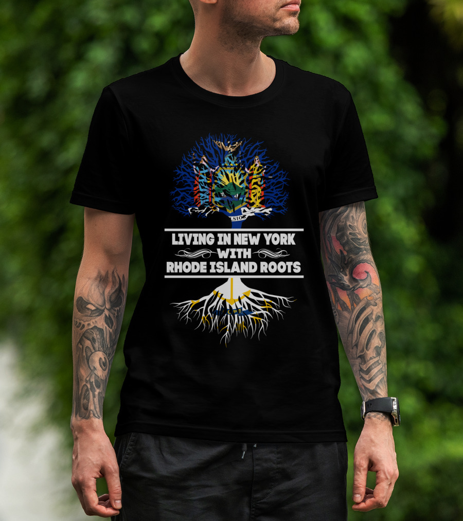 Living In New York With RHODE ISLAND Roots Featuring New York State Tree And State Symbols T-Shirt