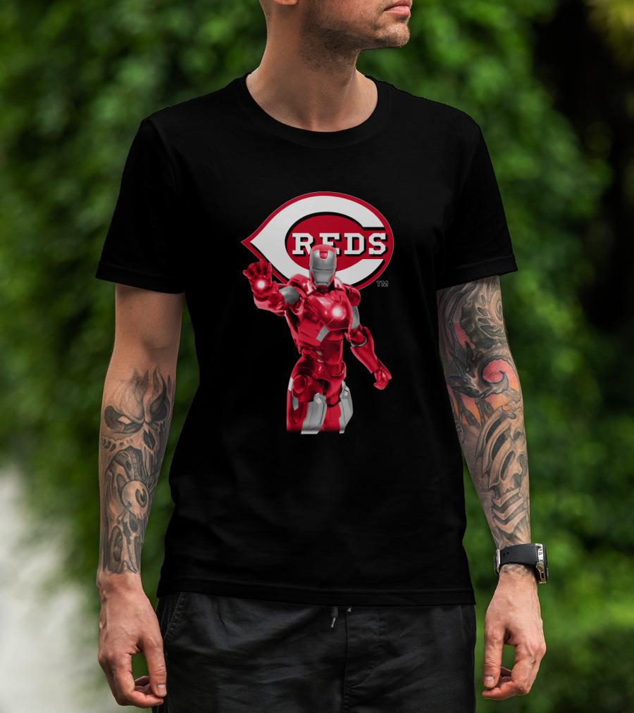 Iron Man Cincinnati Reds Collaboration Mascot Concept Marvel Baseball T-Shirt
