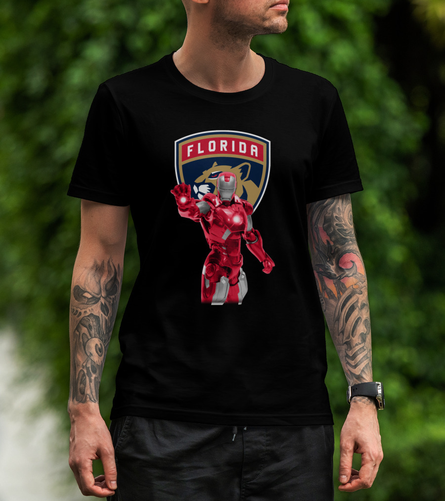 The Iron Man Florida Panthers Crossover T-shirt is designed for everyday wear and a consistent fit. Fabric is pre-shrunk ring-spun cotton with durable stitching. See the size chart below for exact measurements.