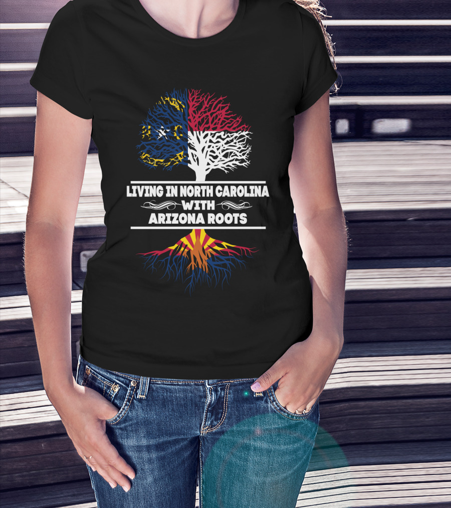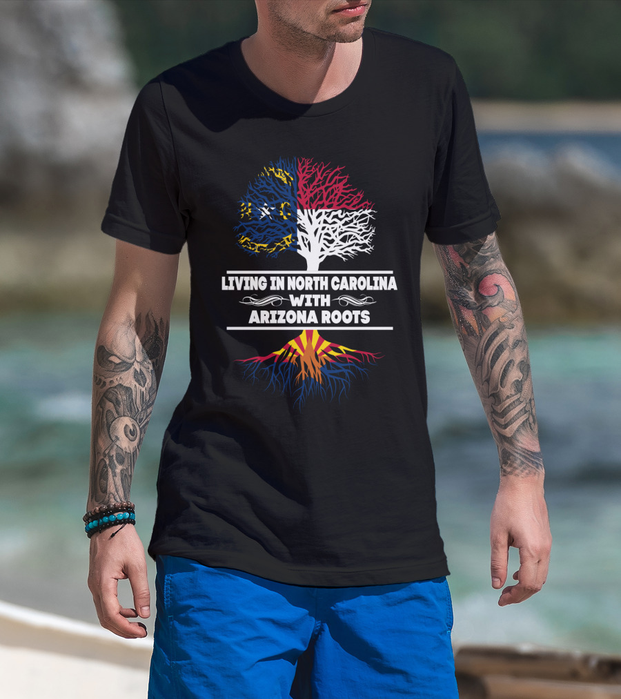 Living In North Carolina With Arizona Roots Tree Design Featuring State Flags T-Shirt