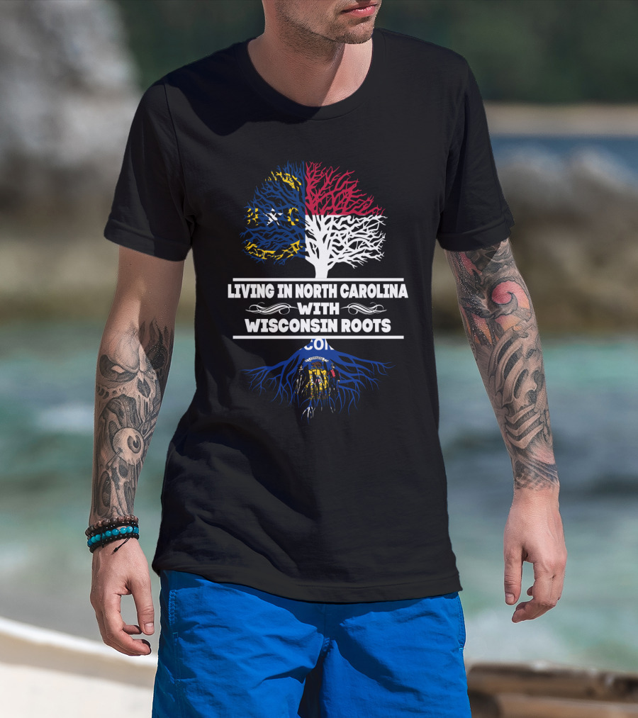 Living In North Carolina With Wisconsin Roots Showcasing State Flags And Tree Symbolism T-Shirt