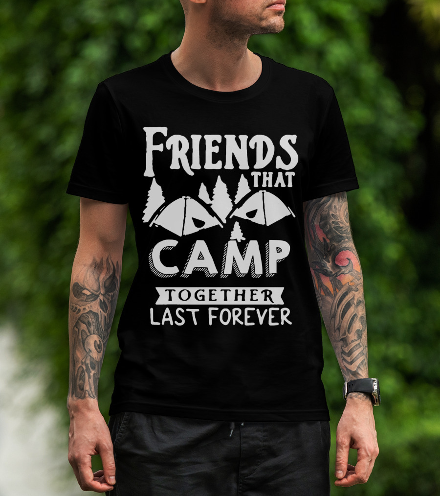 Friends That Camp Together Last Forever Rustic Camping Tents And Pines T-Shirt