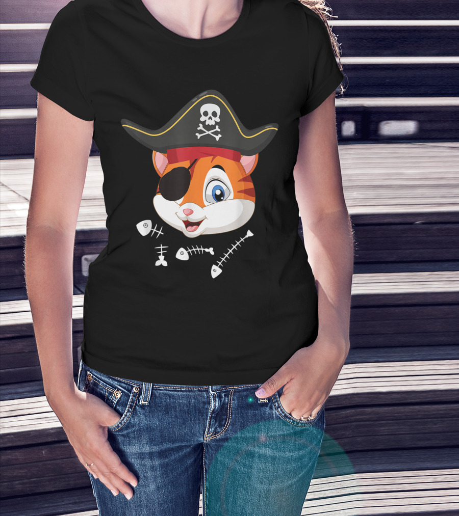 Halloween Cat With Pirate Hat And Eye Patch T-Shirt