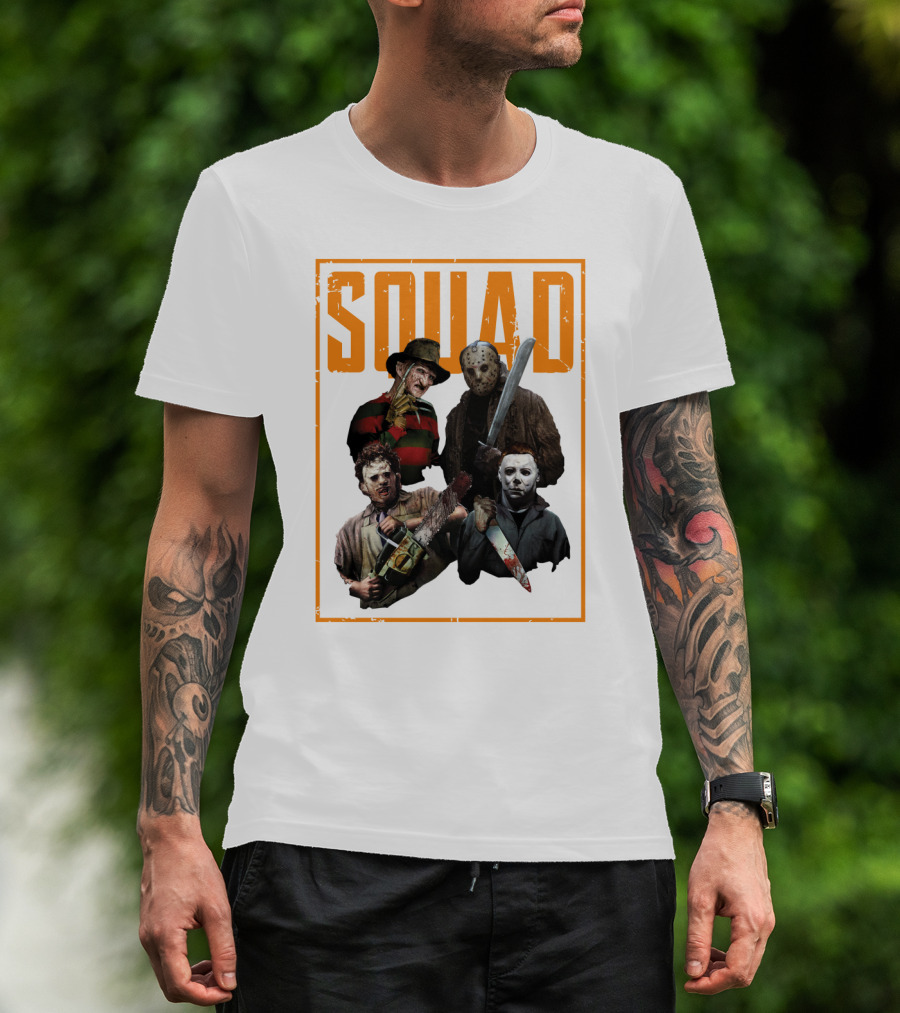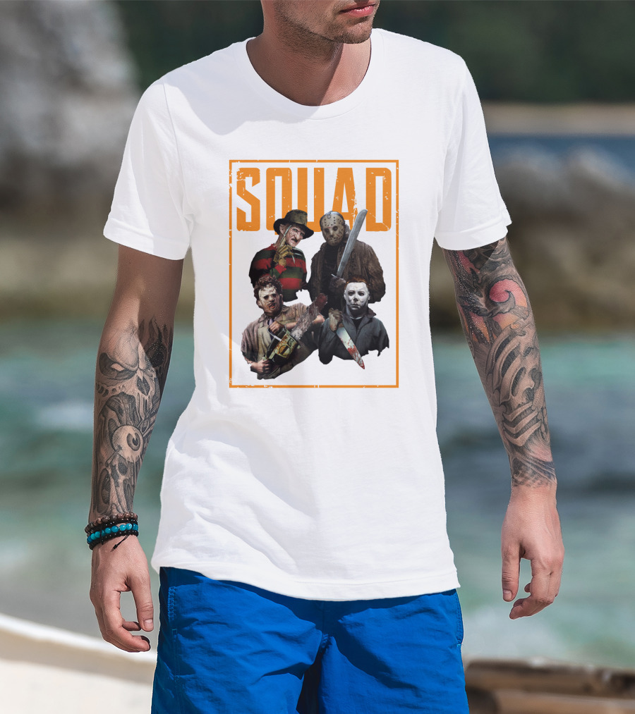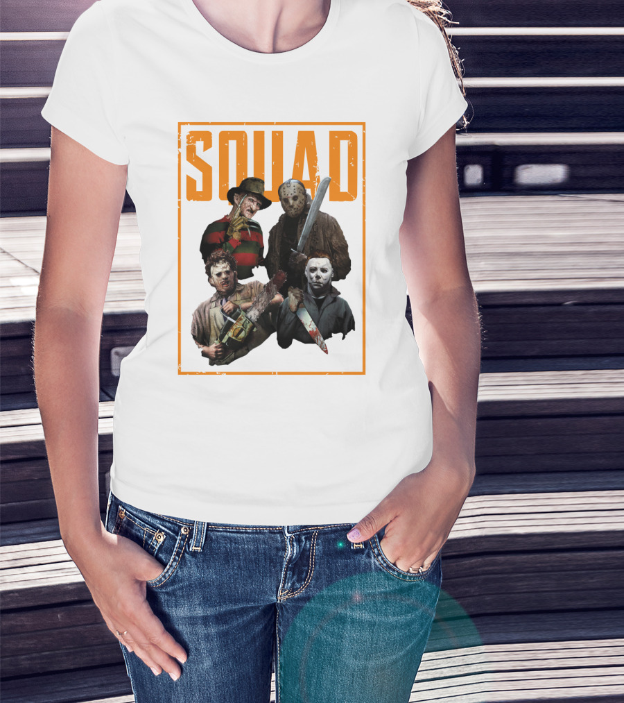 Squad Featuring Iconic Horror Characters In T-Shirt