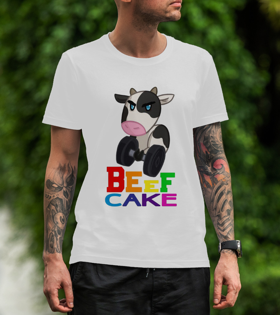 Beefcake Cow Lifting Dumbbells Cartoon T-Shirt