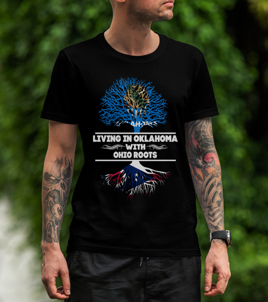 Living In Oklahoma With Ohio Roots Flag-Inspired Tree T-Shirt