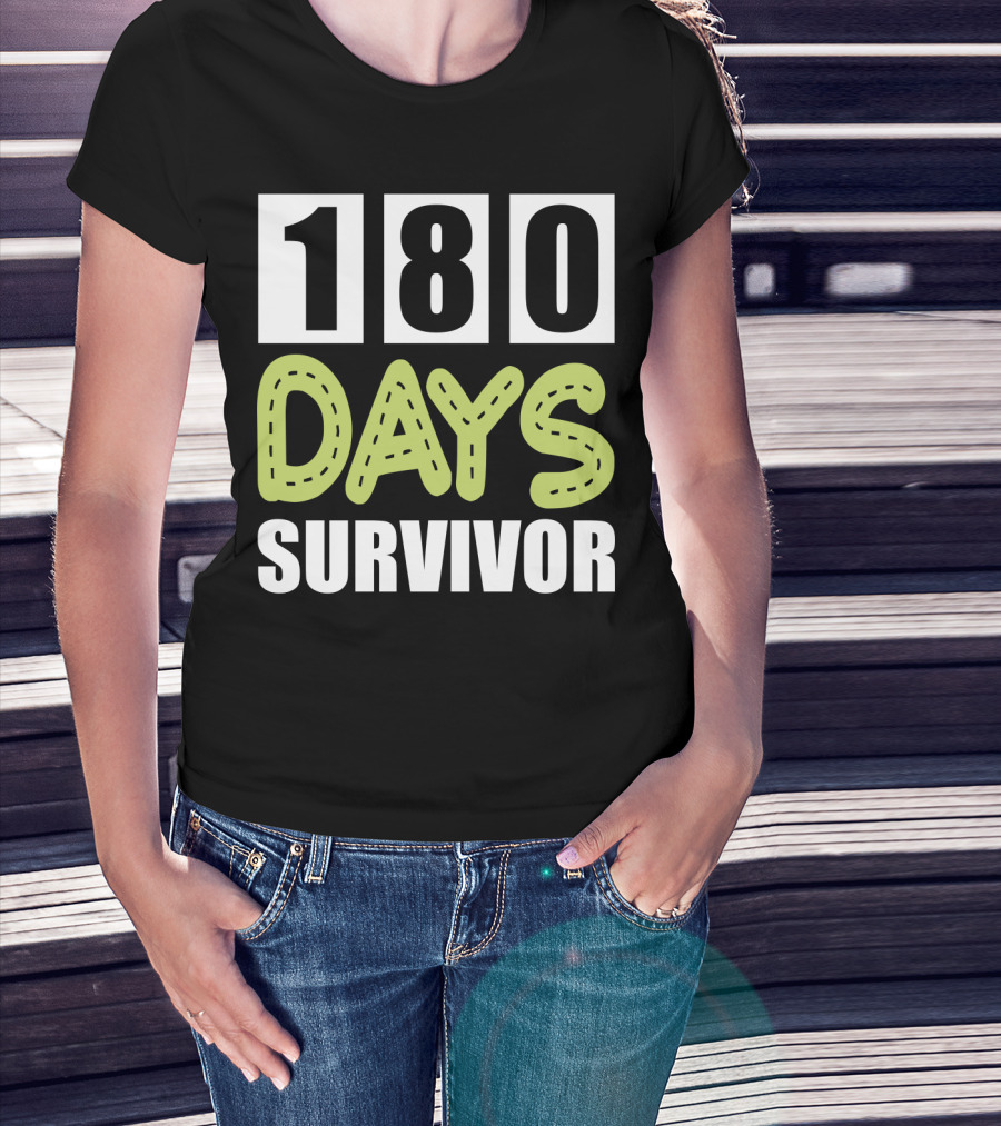 The 180 Days School Survivor for Teachers and Students T-shirt is designed for everyday wear and a consistent fit. Fabric is pre-shrunk ring-spun cotton with durable stitching. See the size chart below for exact measurements.