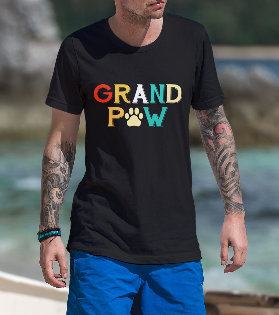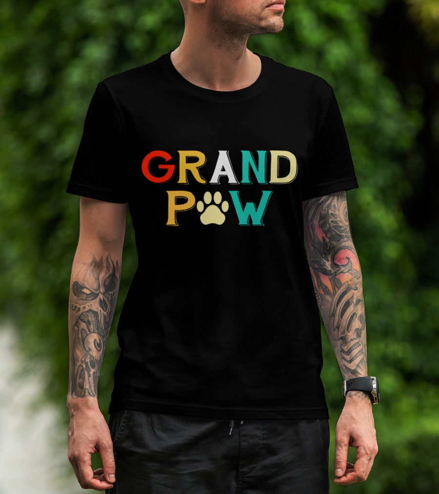 Grand Paw Doggy Puppy Lover Grandpa Funny Dog Paw Prints T-Shirt