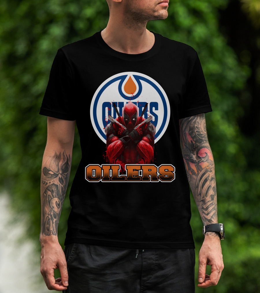 Edmonton Oilers Deadpool Crossover Fan Art NHL Marvel Mashup T-Shirt