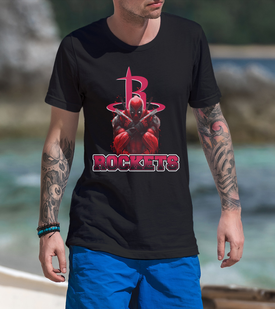 Deadpool Crossed Arms With Houston Rockets Logo Fan T-Shirt