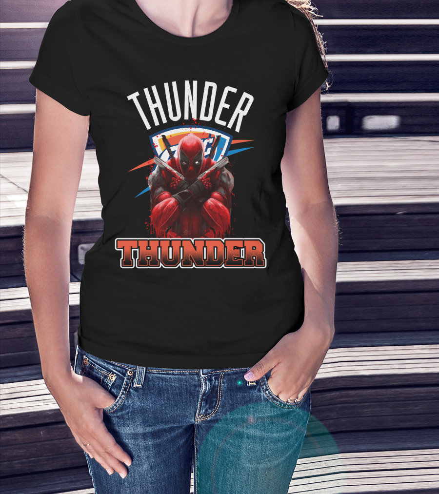 Thunder Crossover With Iconic Marvel Character On Oklahoma City Background T-Shirt