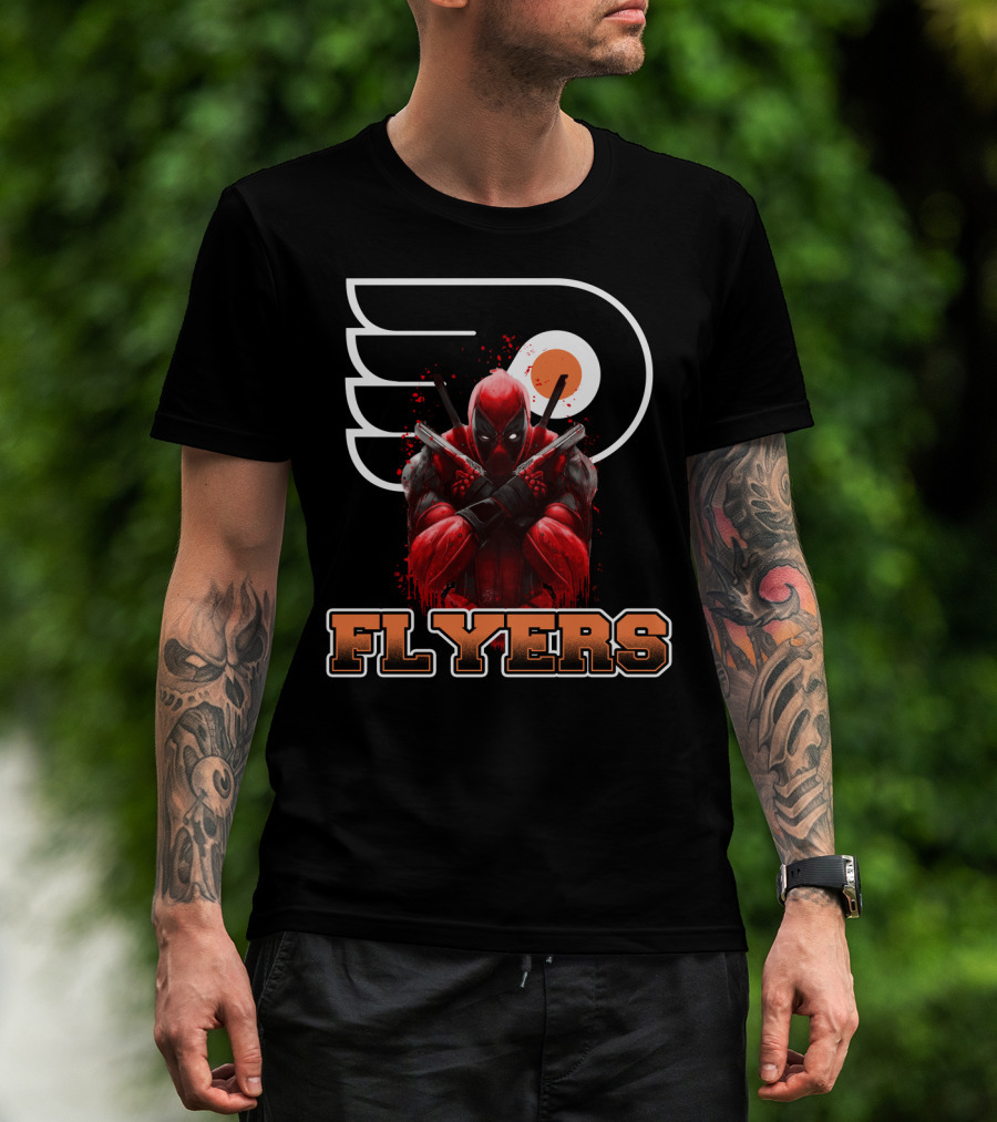 Philadelphia Flyers Deadpool Mashup With Iconic Hockey Logo And Character Crossover T-Shirt