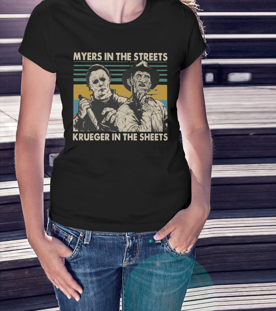 Myers In The Streets Krueger In The Sheets Horror Icons T-Shirt