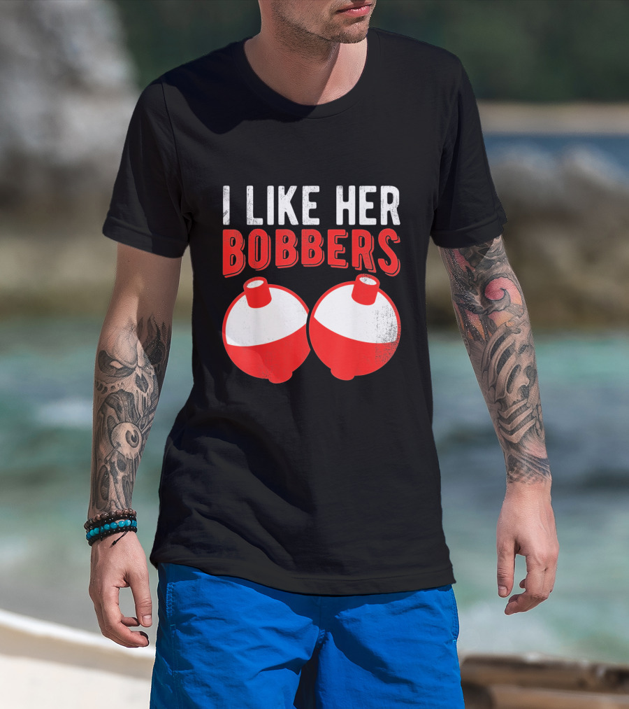 I Like Her Bobbers Funny Fishing Joke With Red And White Bobbers T-Shirt