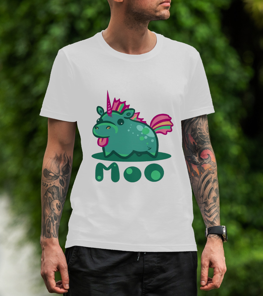 The Moo Cute Derpy Unicow with Pink Horn and Rainbow Tail T-shirt is designed for everyday wear and a consistent fit. Fabric is pre-shrunk ring-spun cotton with durable stitching. See the size chart below for exact measurements.