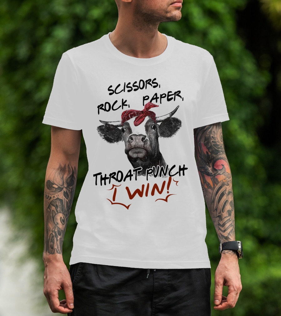 Scissors Rock Paper Throat Punch I Win Funny Cow Bandana T-Shirt