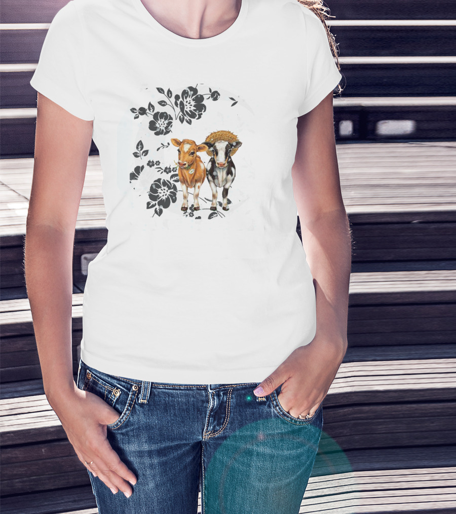 I Love Cows To The Moon And Back Floral Black And White Cow T-Shirt
