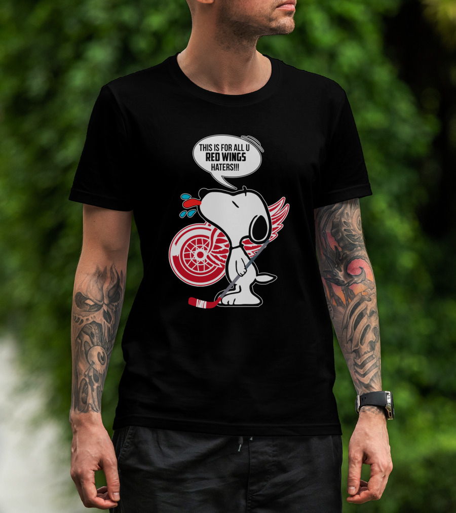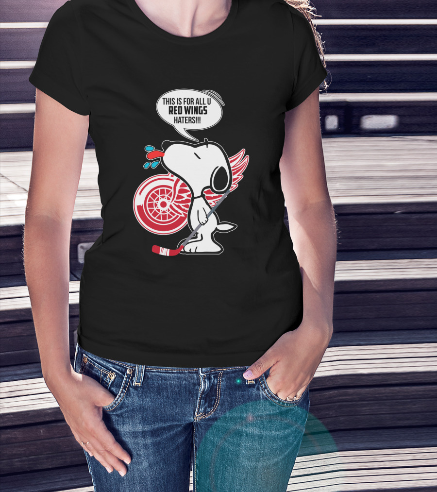 Snoopy Shows Love With Detroit Red Wings Logo And Hockey Stick T-Shirt