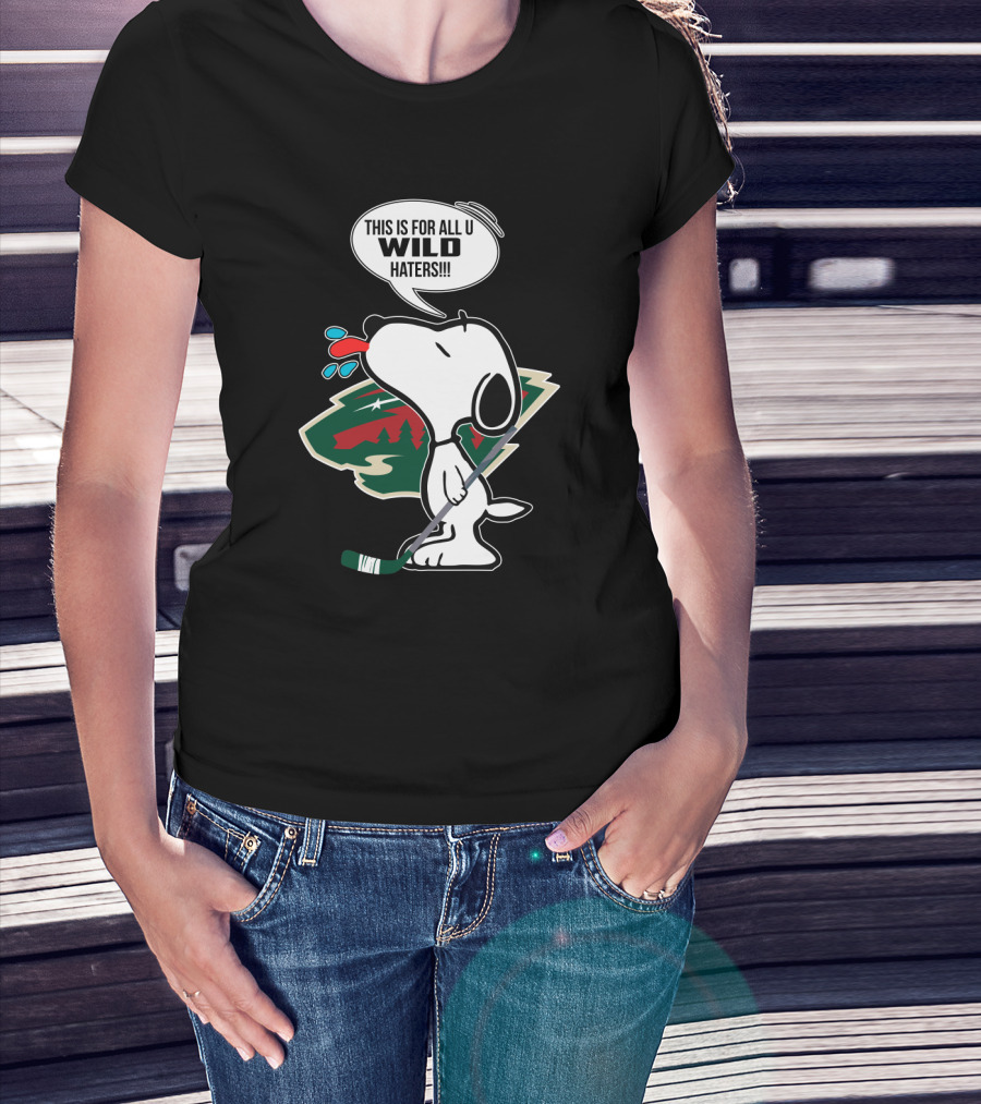 Snoopy Cartoon With Minnesota Wild Hockey Fans Message For All U Wild Haters T-Shirt