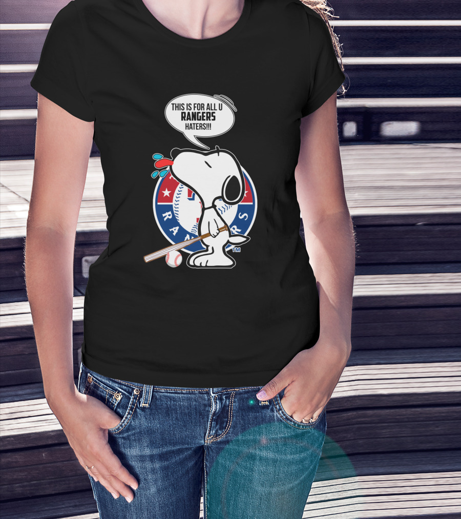 How much will this Snoopy and Texas Rangers Baseball Fans United Against Haters shirt shrink?
