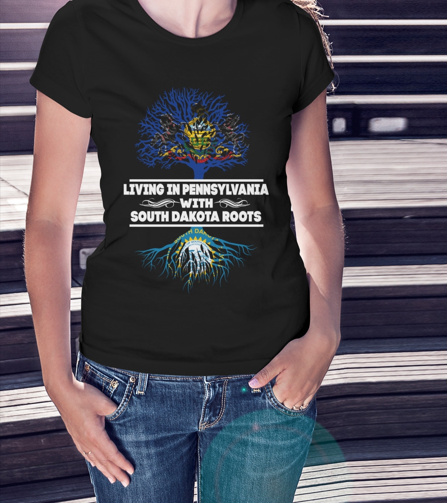 Pennsylvania Pride With South Dakota Heritage Blue Tree And Sunburst Emblem T-Shirt