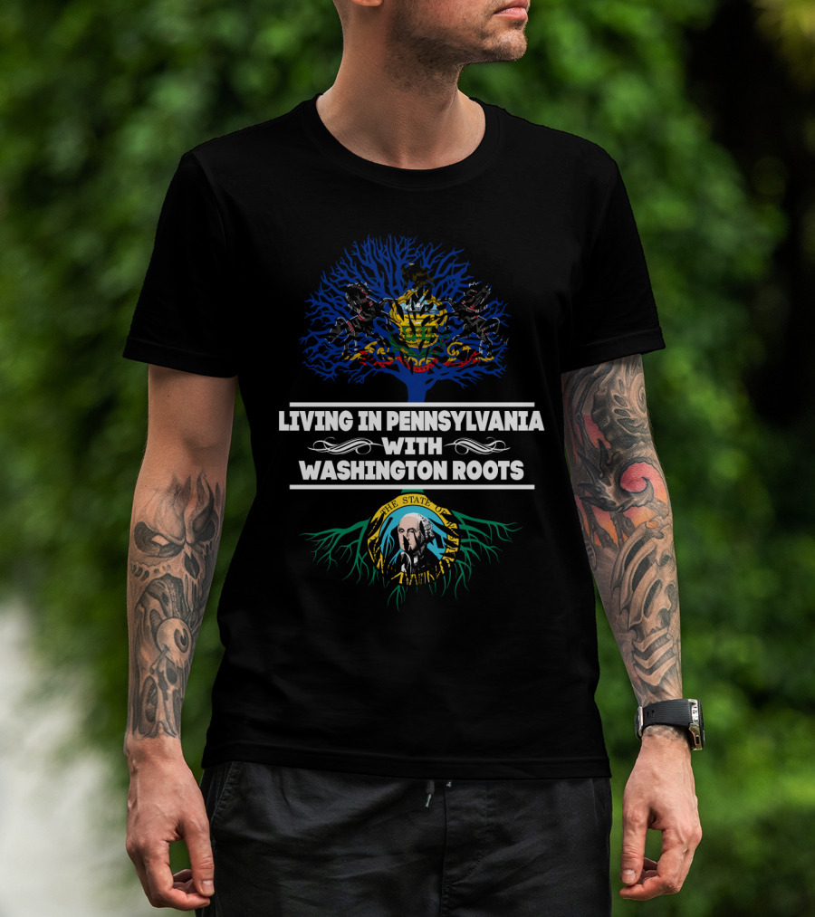 Pennsylvania Living With Washington State Roots Featuring State Seals And Tree T-Shirt