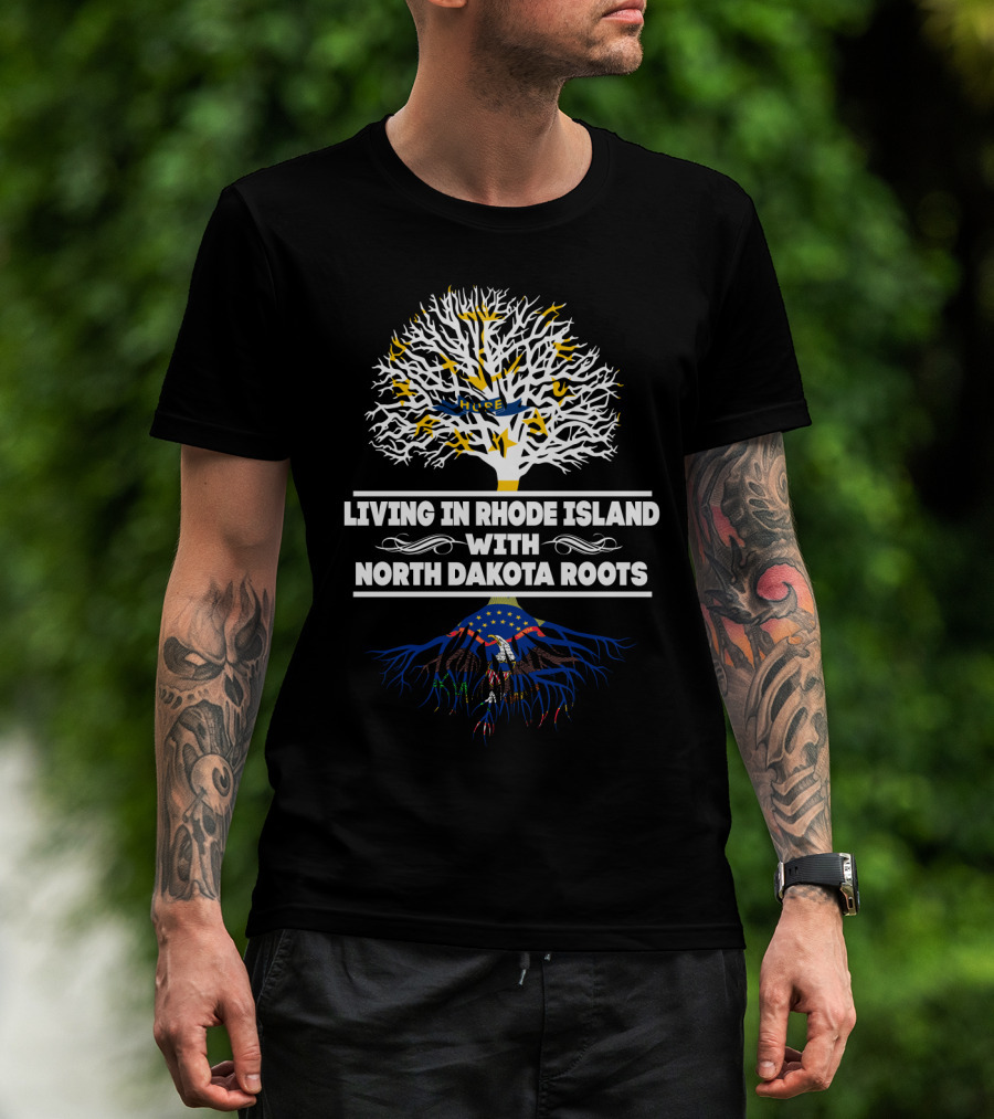 Living In Rhode Island Embracing Deep-Rooted North Dakota Heritage Tree T-Shirt
