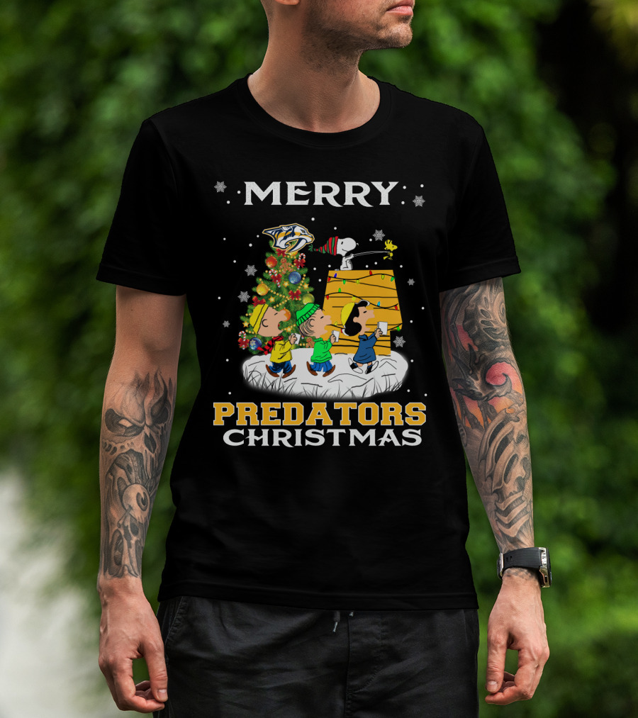 Merry Predators Christmas Featuring Snoopy And Nashville Holiday Cheer T-Shirt