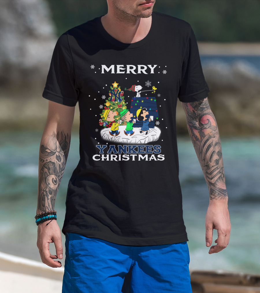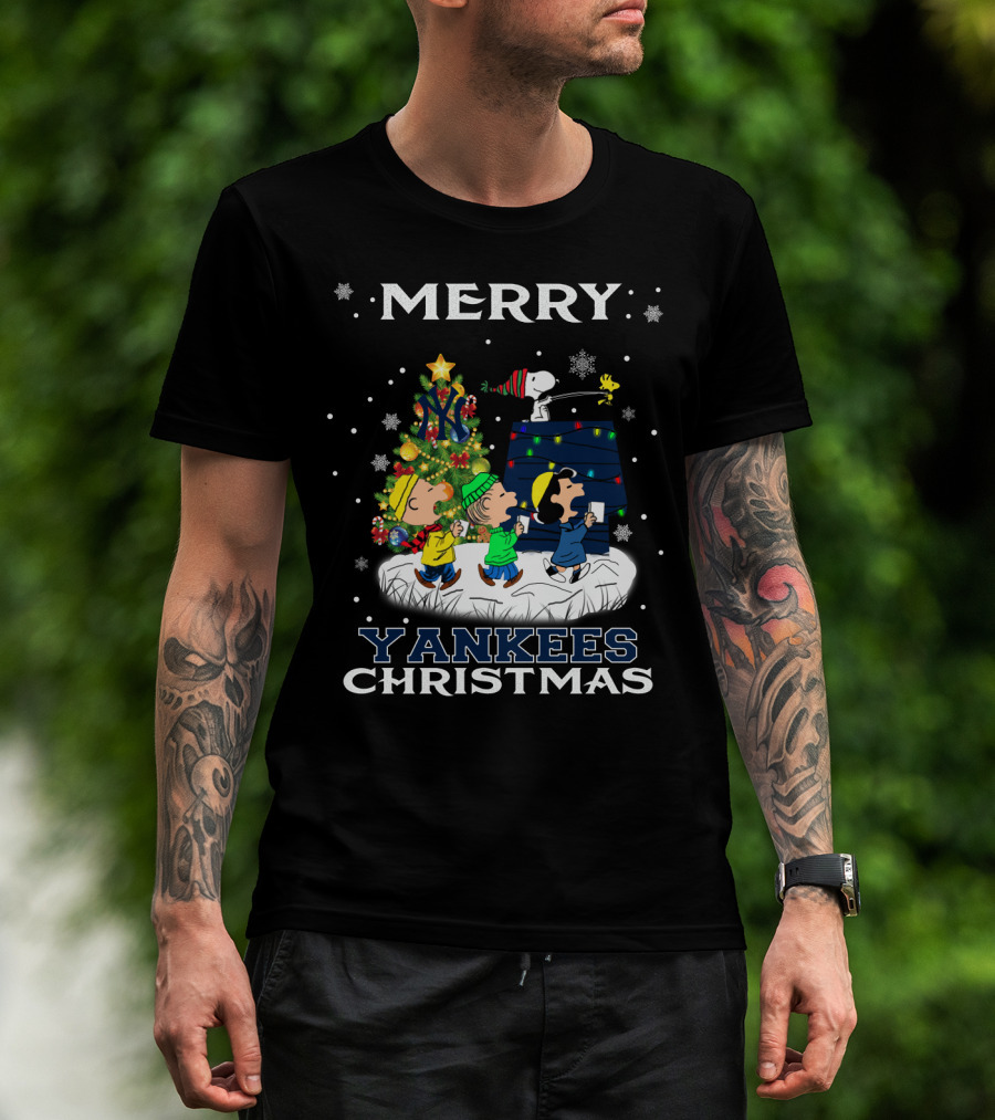 Merry Yankees Christmas Featuring Snoopy And Peanuts Characters T-Shirt