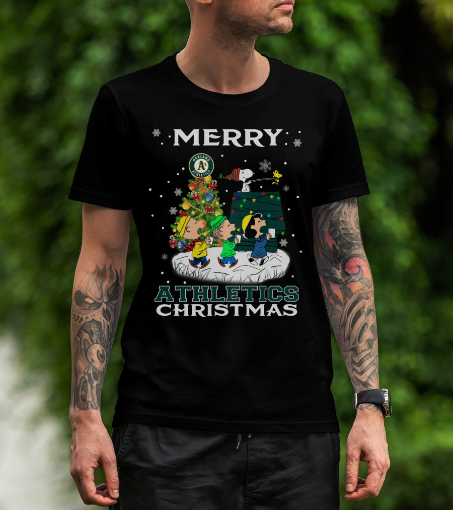 Merry Oakland Athletics Christmas With Snoopy And Friends T-Shirt