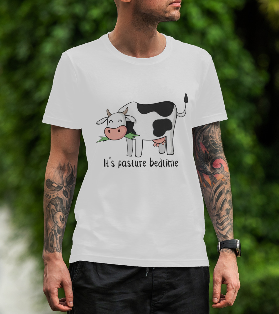 Humorous Cartoon Cow It's Pasture Bedtime T-Shirt