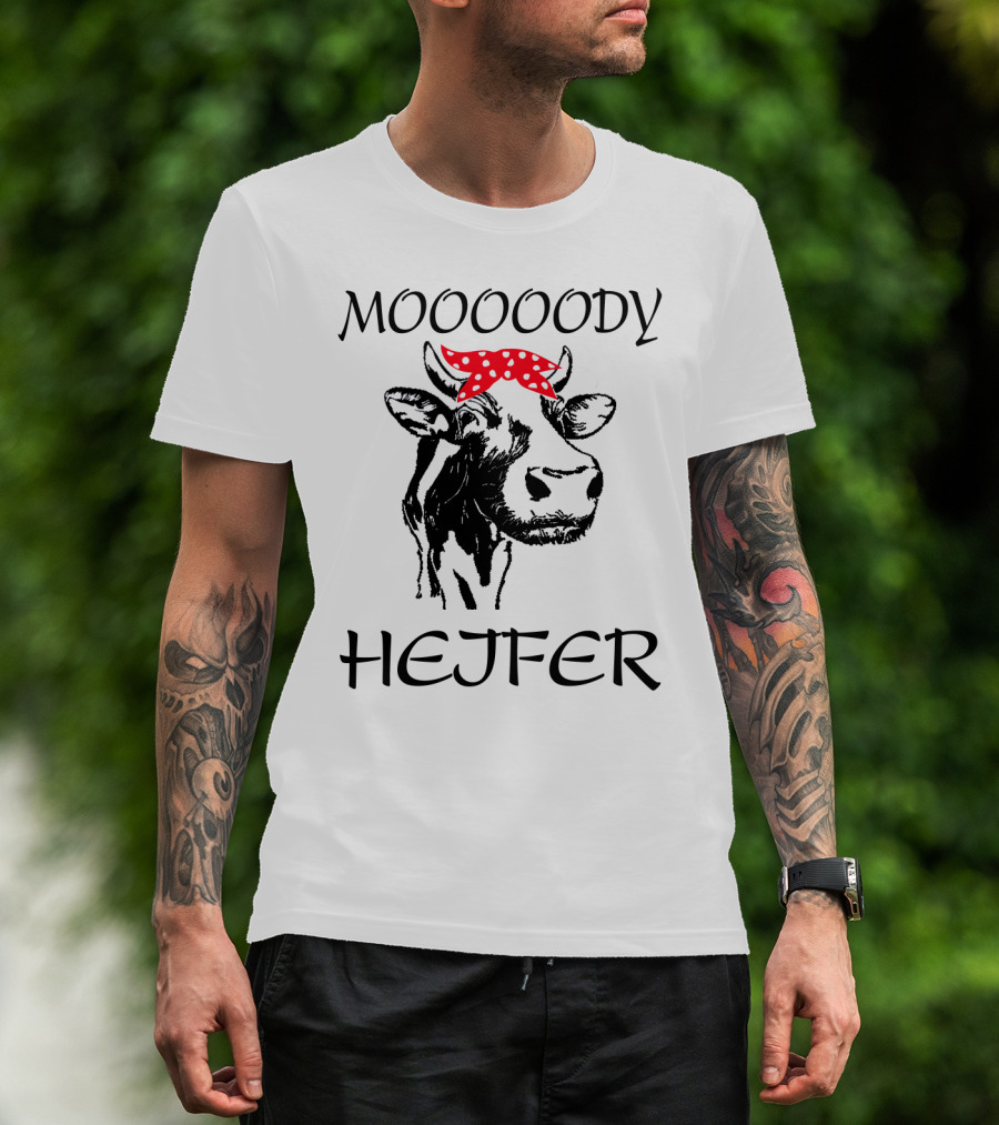 Mooooody Heifer Cow With Red Polka Dot Bandana T-Shirt