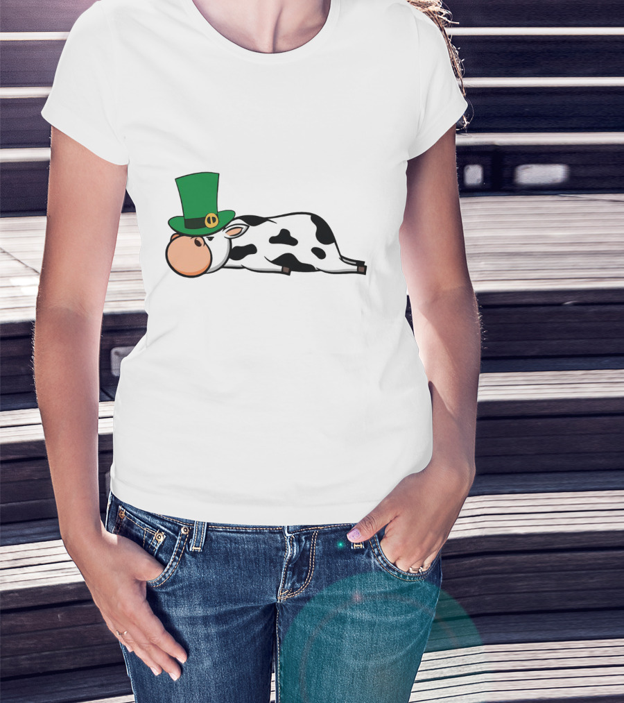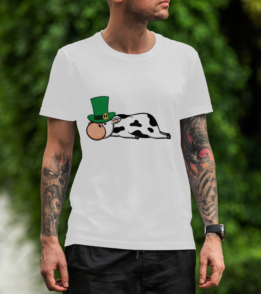 St Patricks Day Irish Cow With Green Hat Drunken Beer Party T-Shirt