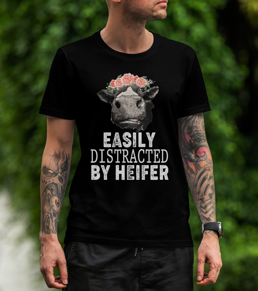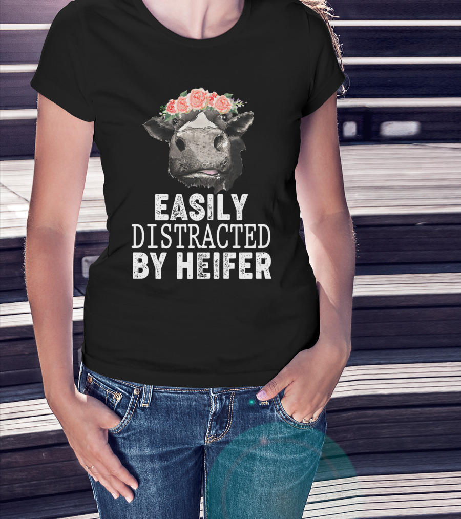 Easily Distracted By Heifer Floral Cow With Flower Crown T-Shirt