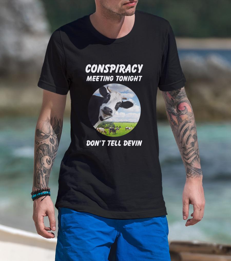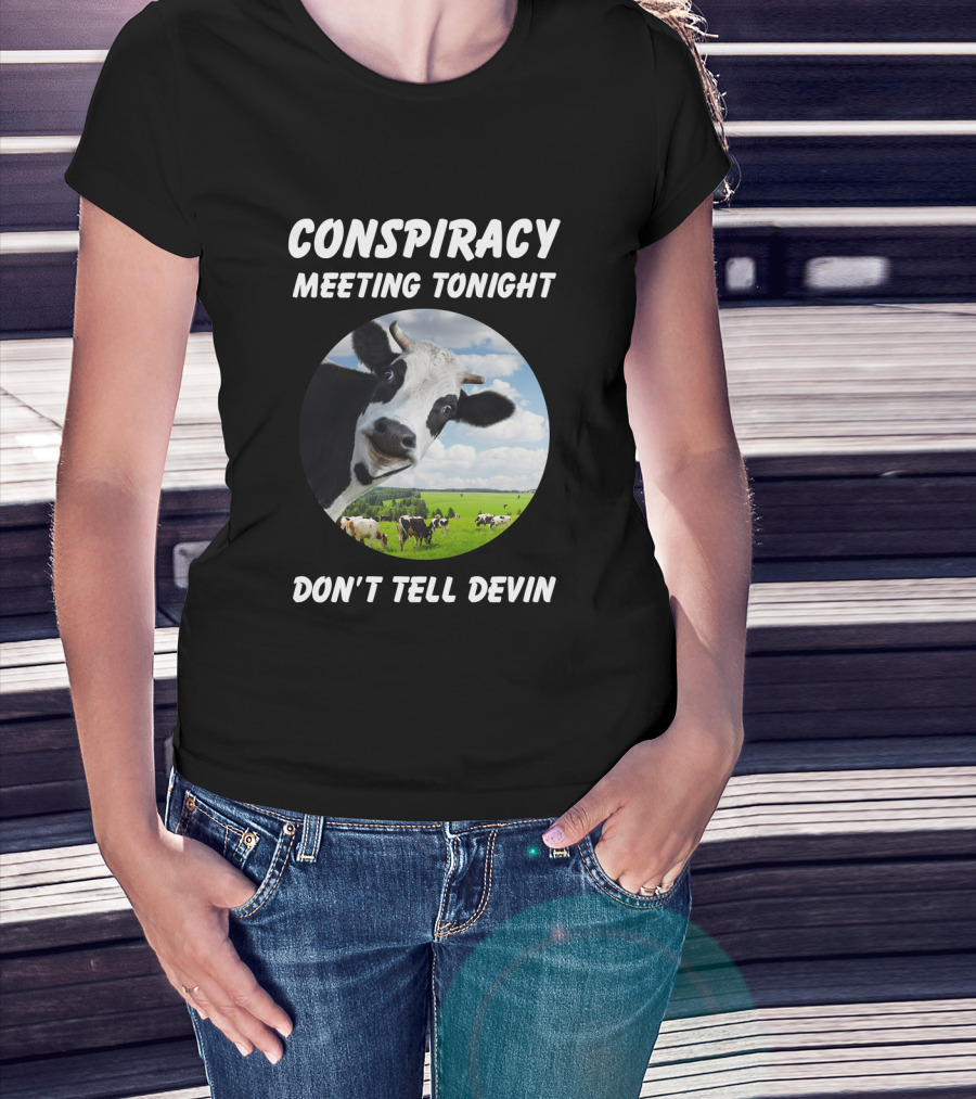 Conspiracy Meeting Tonight Don't Tell Devin Cow Gathering In Pasture T-Shirt