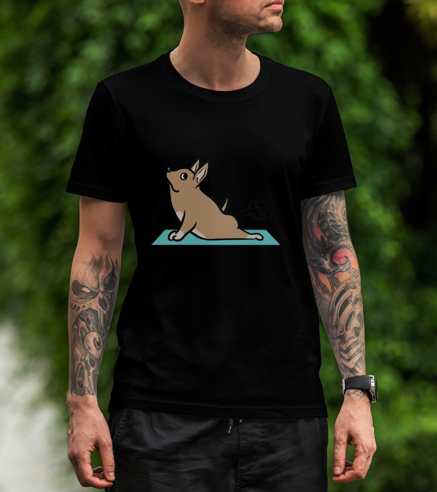 Chihuahua Yoga Pose With Fart Cloud On Mat T-Shirt