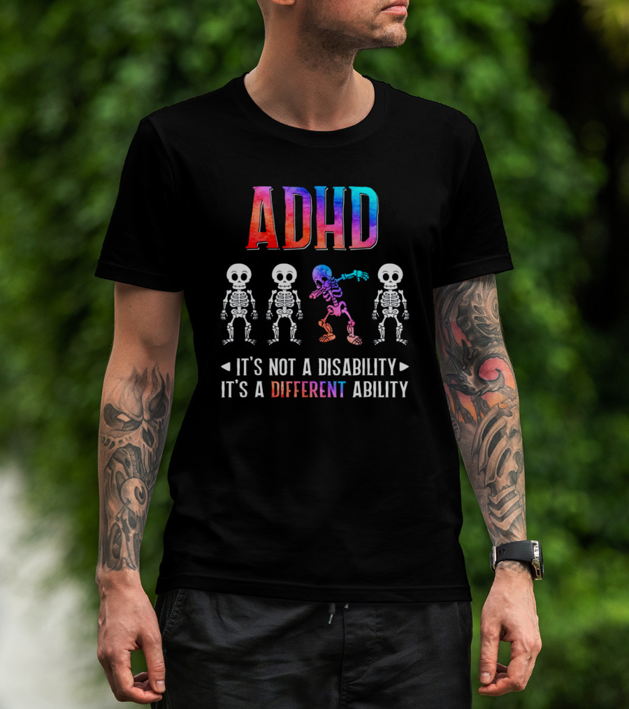 ADHD It's Not A Disability It's A Different Ability Colorful Skeletons T-Shirt