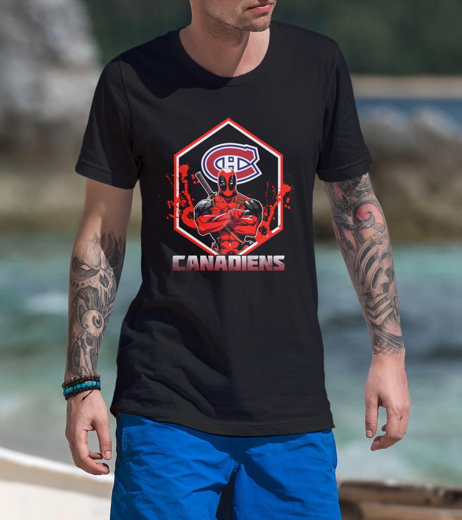 Deadpool Montreal Canadiens NHL Hockey Fan Art Crossover T-Shirt