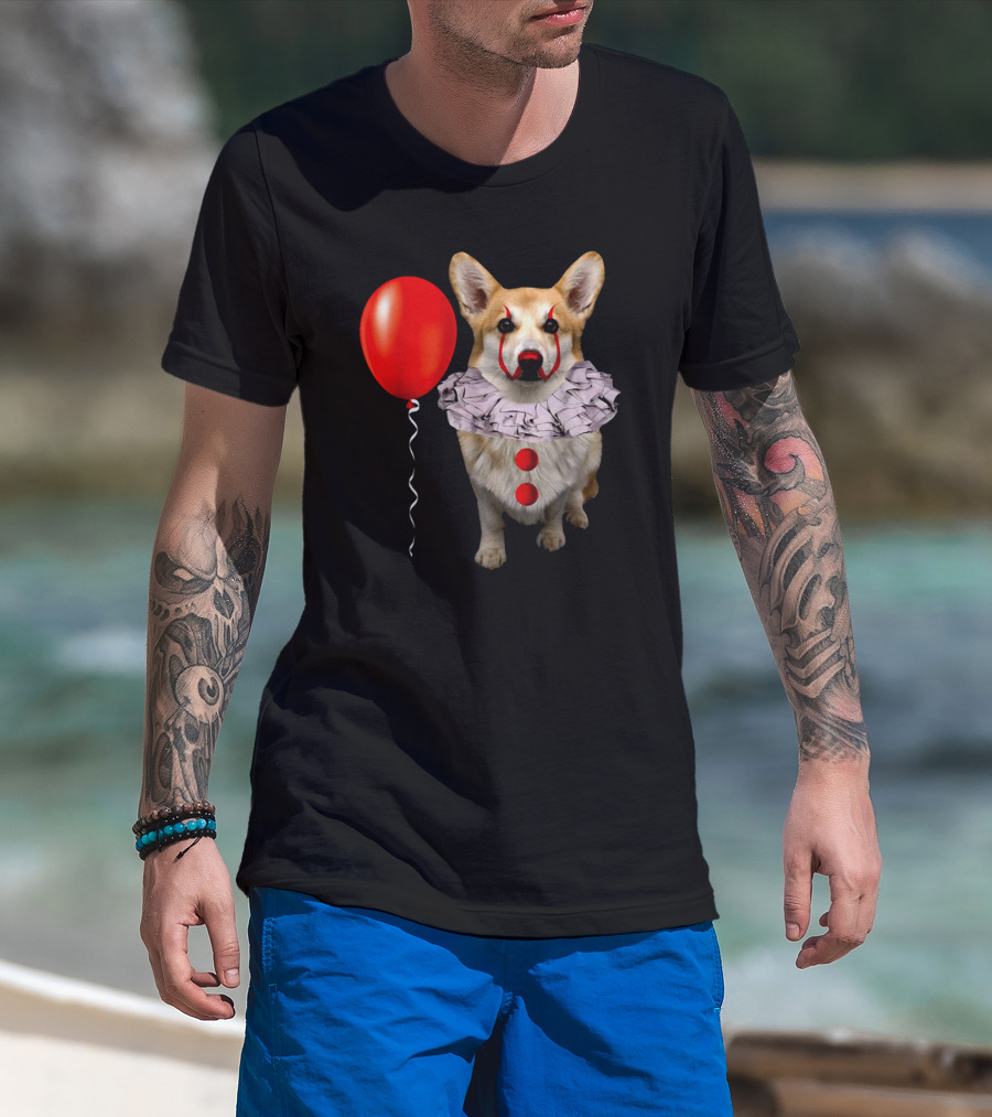 Red Balloon Corgi Scary Clown Funny Costume T-Shirt
