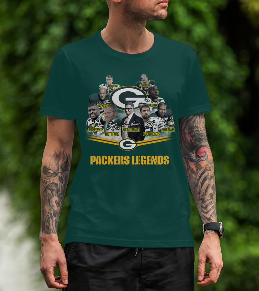 Packers Legends Vince Lombardi Reggie White Brett Favre Aaron Rodgers Ray Nitschke Bart Starr Curly Lambeau Paul Hornung T-Shirt